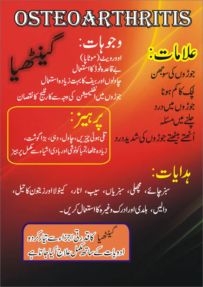 A natural remedy to overcome the increasing number of osteoarthritis patients in our society.It is due to our eating life style and food. A very effective remedy to cure the osteoarthritis issues...