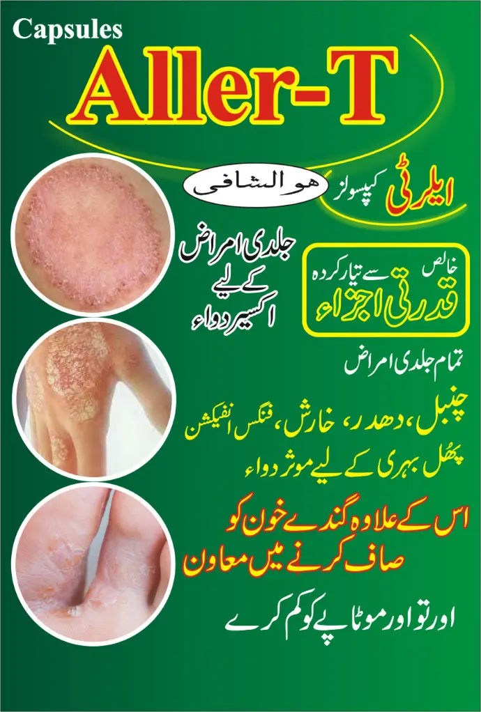 A natural remedy to cure the skin issues and also purify the blood. All skin problems and also Allergic issues are treated with the help of "Aller-T" . Remove the allergic particles from the blood.